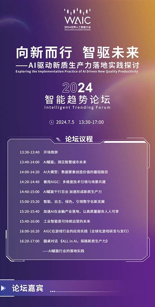 从科技创造新需求到出海寻求新商机,AI等前沿技术能否撬动企业发展增长拐点? ChatGPT的横空出世再一次打开了人们对人工智能的想象空间。此后,一系列语言、图像、视频、音频大模型在相继推出和快速迭代,基于预训练大模型的应用在全球范围内产生了爆炸式的影响。无论喜欢与否,人工智能已经渗透到人们工作、生活的方方面面。 技术迭代是起点,产业赋能是AI的尽头。正如人工智能和机器学习领域国际权威学者吴恩达所说,“人工智能是新电能,正改变医疗、交通、娱乐、制造业等主要行业,丰富充实着无数人的生活”。通过与诸多垂直领域应用相结合,AI技术在数据分析、机器学习、自然语言处理等方面的优势实现行业降本增效目标,创造出新需求、新商业模式和新的经济增长点,最终推动新产业的诞生和旧产业的转型升级。 根据MarketsandMarkets发布的报告数据显示,全球人工智能(AI)市场规模预计将从2024年的2,146亿美元增长到2030年的13,391亿美元,复合年增长率高达35.7%。而在大量行业场景中,AI应用价值尚未得到充分开发。如何在垂直行业的关键环节释放AI潜力,仍是各行各业的重要议题。 7月5日,2024 WAIC智能趋势论坛将在上海举行。论坛邀请数十位业界专家、学者和企业家,围绕“AI大模型:数据要素创造价值的最短路径”、“善用AIGC:多维度技术引领与场景共建”、“加速AI在金融产业落地”、“工业智能是可持续运营的未来”、深度交流,从人工智能场景、产业、应用等维度,找到产业快速发展的坐标。 AI与产业如何双向奔赴?7月5日揭晓。 |